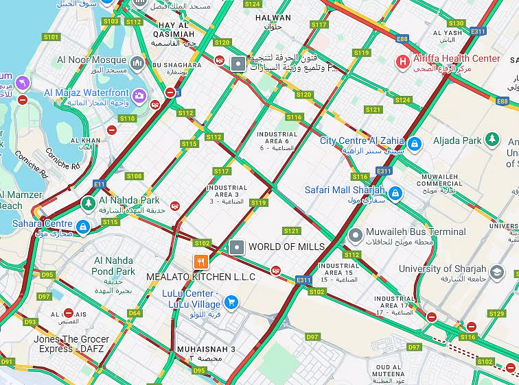 Those travelling from Sharjah are encountering particularly difficult conditions. Gridlock has been reported around Bu Shaghara, Al Nahda and the stretch near Sahara Centre, leading to extended journey times for motorists heading toward Deira and central Dubai.
