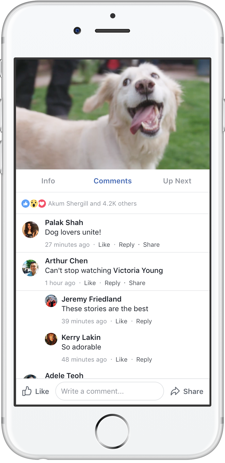 Watch will personalize content for you based on your Facebook activity and allow you to discover new shows that are organized around you with sections such as ‘Most Talked About’, ‘What’s Making People Laugh’ and the most important – ‘What Friends Are Watching’. What makes things interesting for Facebook is this – from their learning of Facebook Live, people’s comments and reactions to videos are often as much a part of experience as the video itself. So when you watch a show on Facebook Watch – you can see comments from your friends and other viewers who are watching in a dedicated Facebook Group for the show!