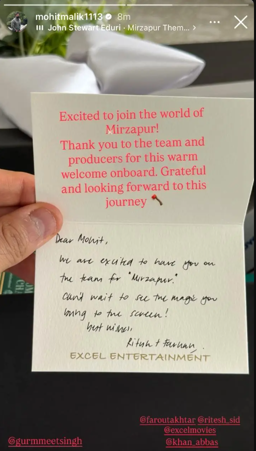 The actor couldn’t hide his excitement and took to social media to share the sweetest note he received from the producers. Posting it with gratitude, Mohit wrote: “Excited to join the world of Mirzapur! Thank you to the team and producers for this warm welcome on board. Grateful and looking forward to this journey.” Fans, naturally, went wild – already speculating about whether he’ll play a villain, an ally, or maybe a character who shakes up Guddu’s empire.