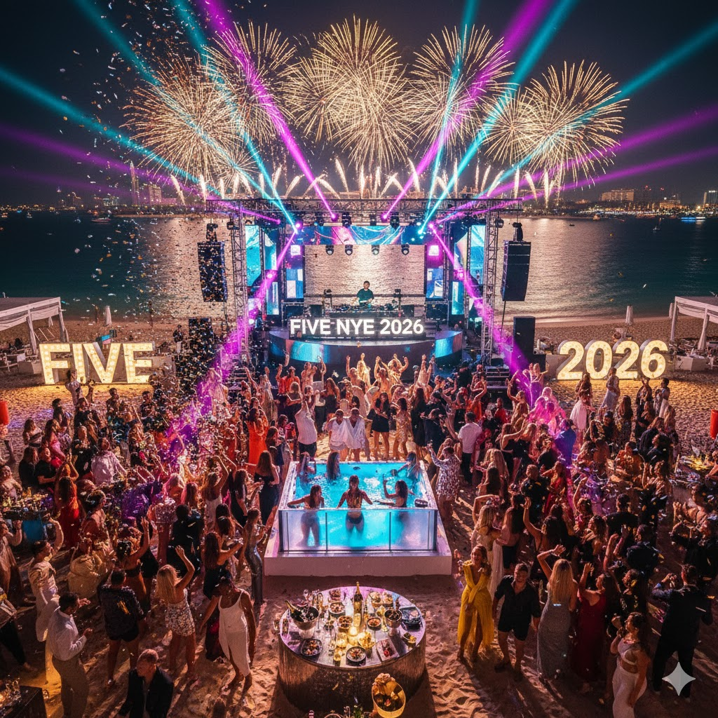 What to expect: A beachfront gala dinner at Beach by FIVE with live performers and signature FIVE energy. Expect gourmet bites, fireworks views, and a crowd that knows how to party.